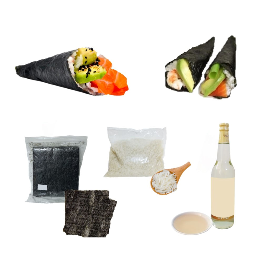 Set Temaki 3u Alga Nori. Arroz Glutinoso. Vinagre