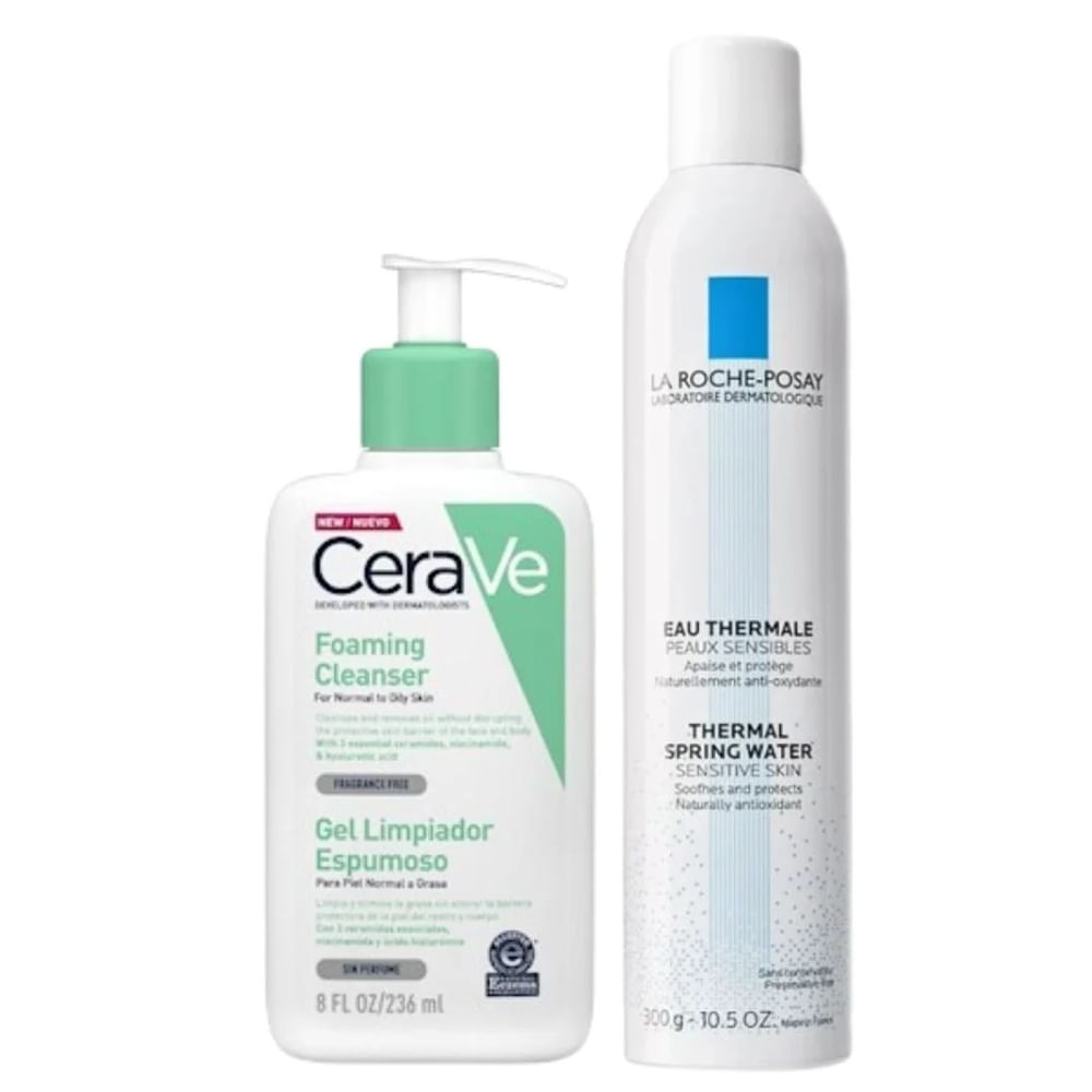 Set Tratamiento Limpieza Facial La Roche Posay Cerave Gel Limpiador Espumoso Agua Termal