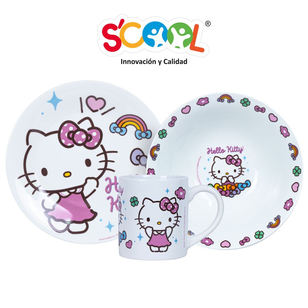 Set Vajilla De Cerámica Scool 3 Piezas Hello Kitty