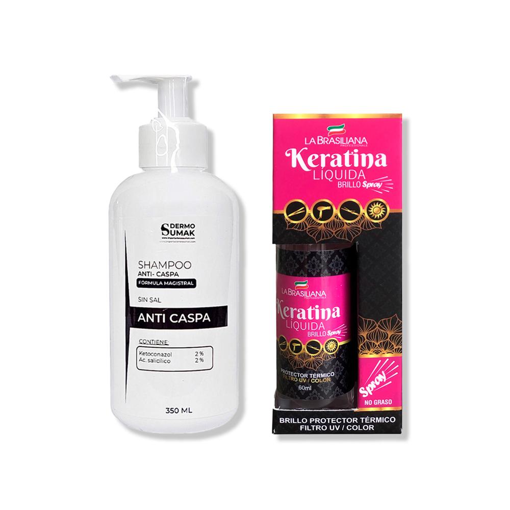 Shampoo Anticaspa Sin Sal 350ml + Spray Brillo Keratina Líquida 60ml