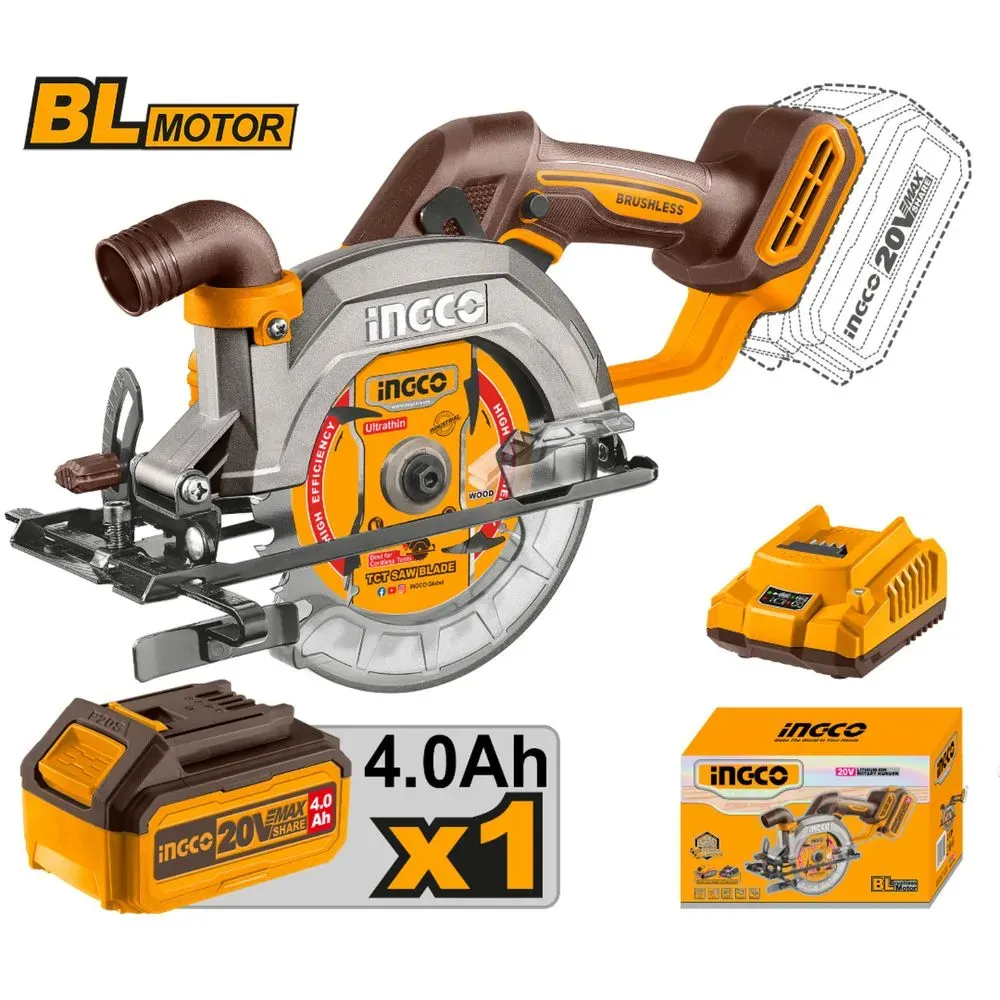 Sierra Circular 140mm con Batería 4ah y Cargador Ingco CSLI14021