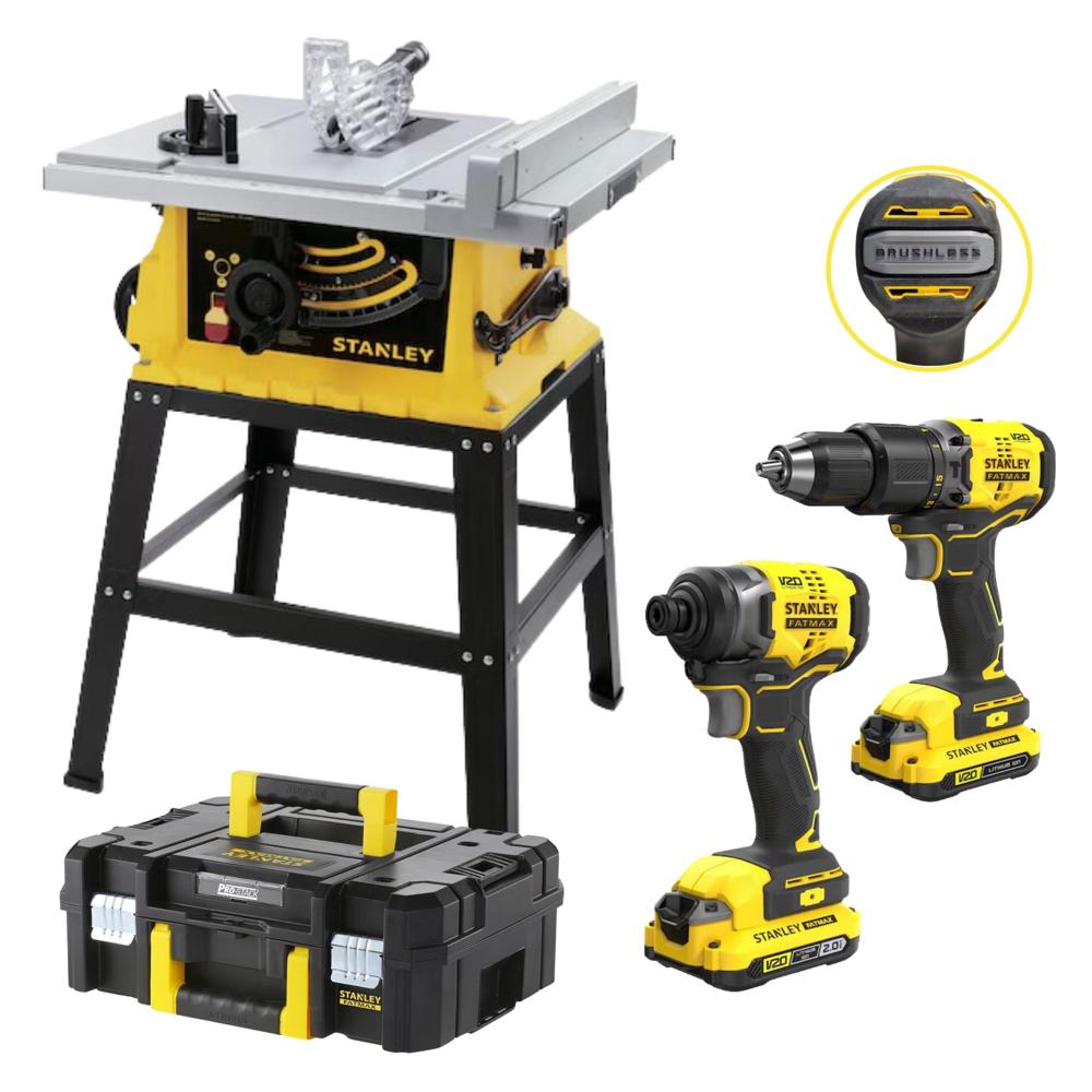 Sierra de mesa 1800 W, taladro percutor, atornillador de impacto, 20V
