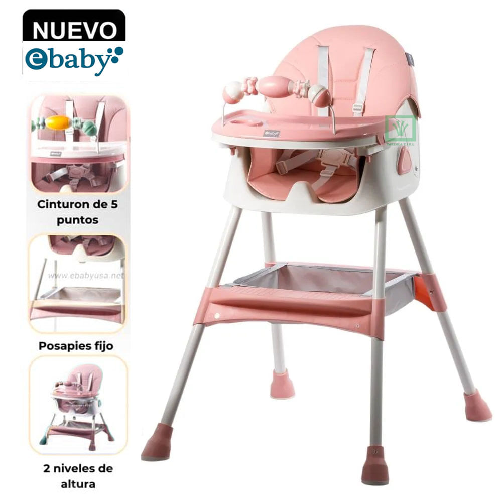 Silla de Comer Ebaby Plegable Doble Bandeja LULU Rosado