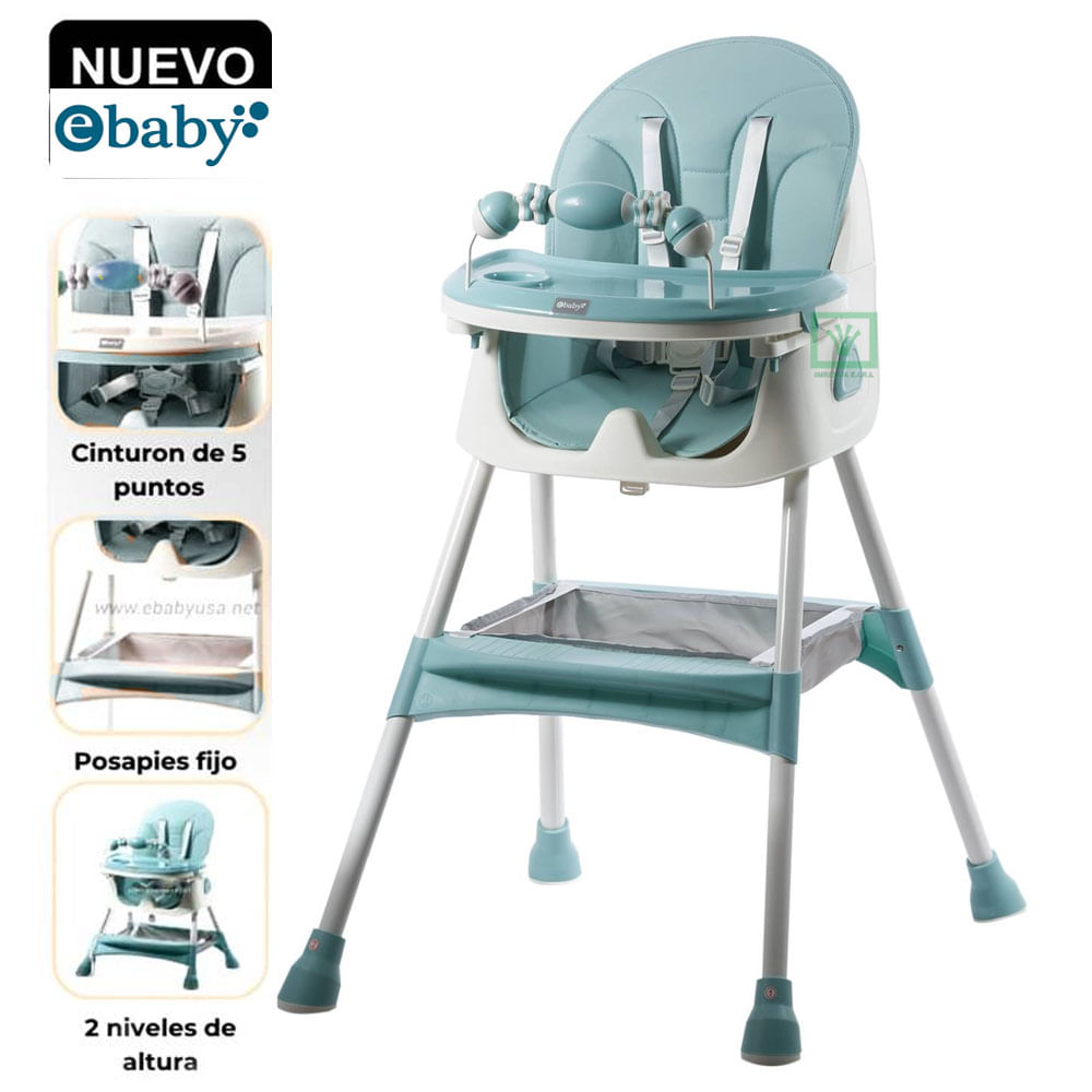 Silla de Comer Ebaby Plegable Doble Bandeja LULU Verde