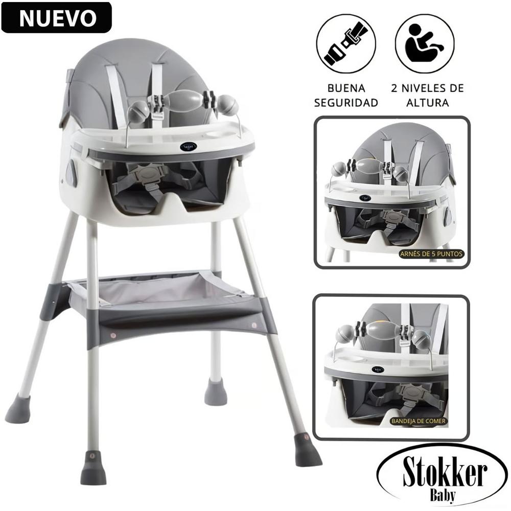 Silla de Comer Plegable Doble bandeja LUNA Gris