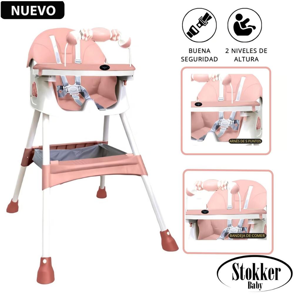 Silla de Comer Plegable Doble bandeja LUNA Rosado