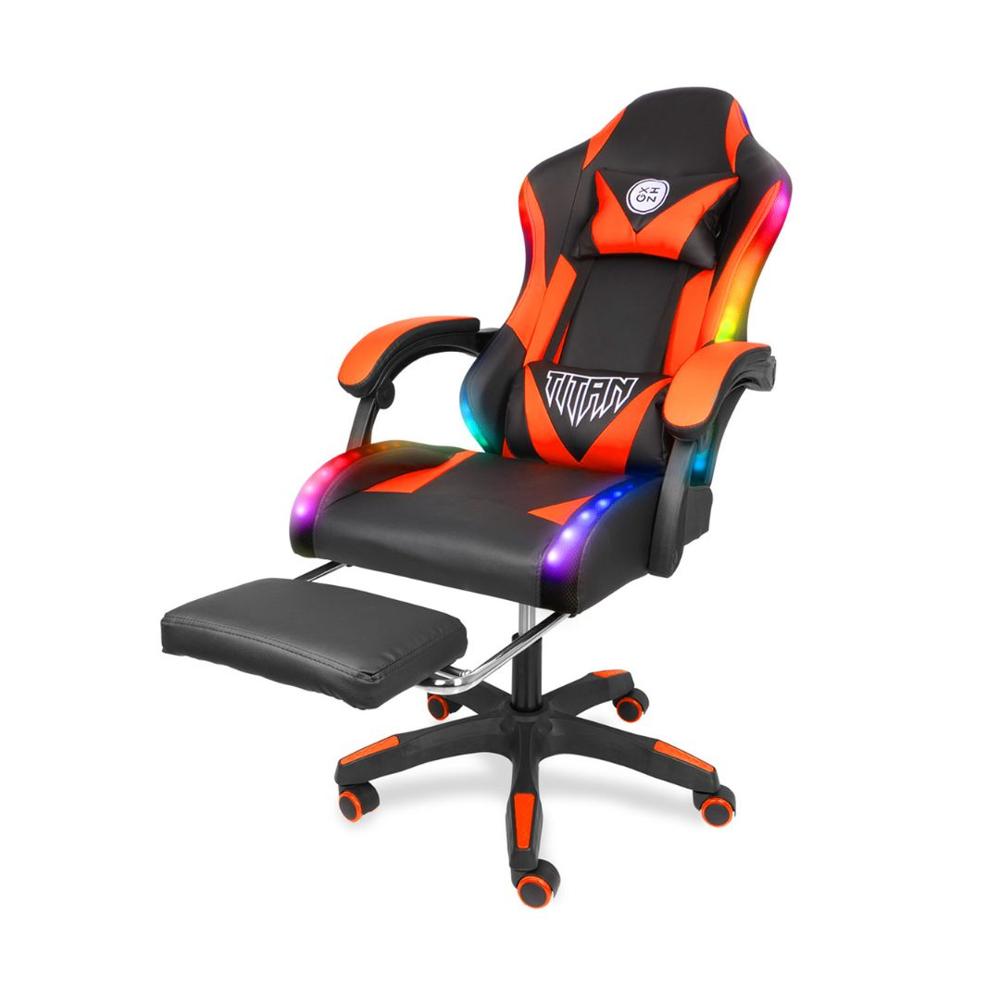 SILLA GAMER CON LUCES RGB XION TITAN ERGONÓMICA CON MASAJEADOR, POSAPIÉS Y RECLINACIÓN 135° NARANJA