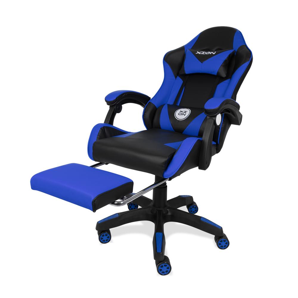 SILLA GAMER ERGONÓMICA CON MASAJEADOR, REPOSAPIÉS Y RECLINACIÓN 135° - XION TITAN AZUL