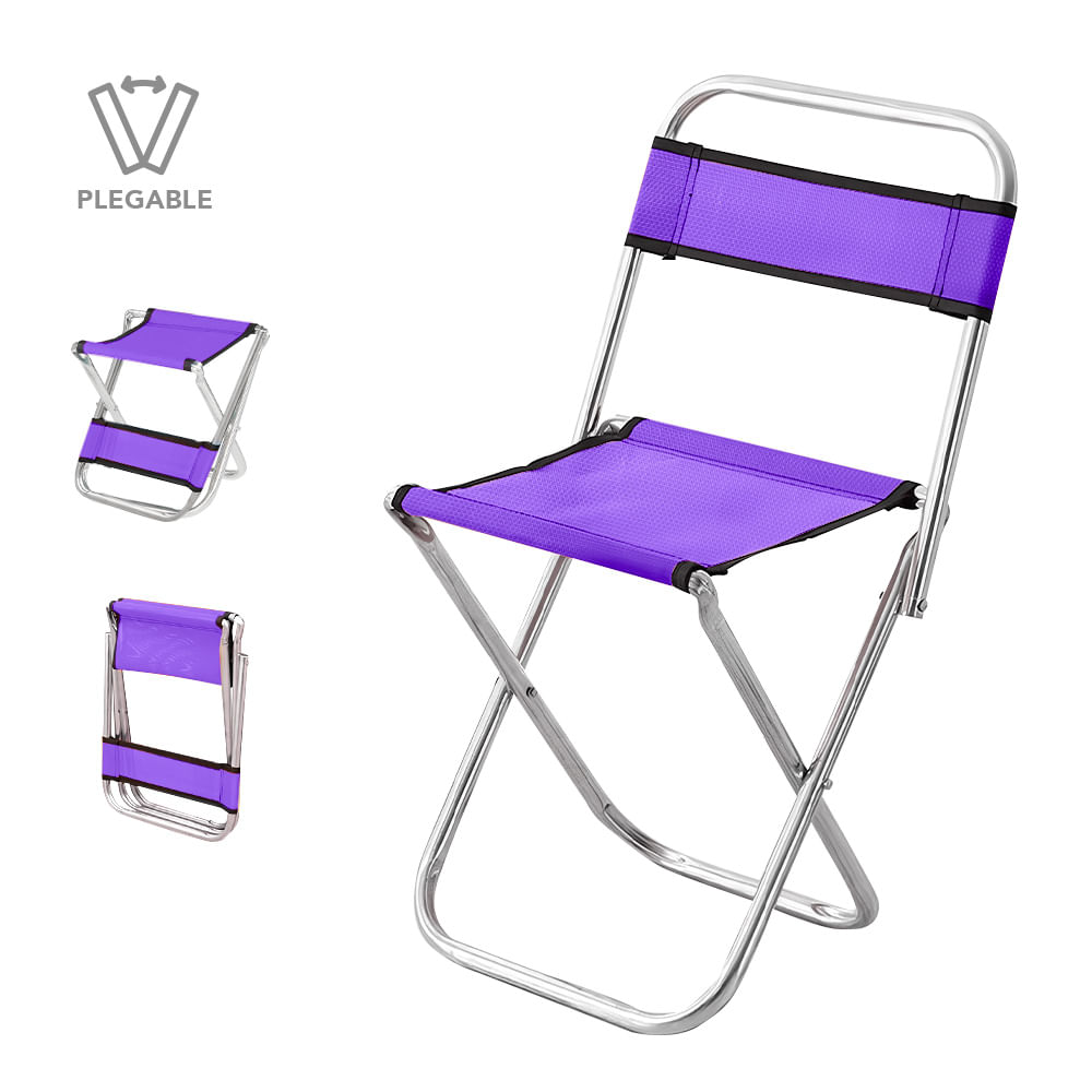 Silla Plegable para Playa Camping Jardín 2 en 1 Morado JD3