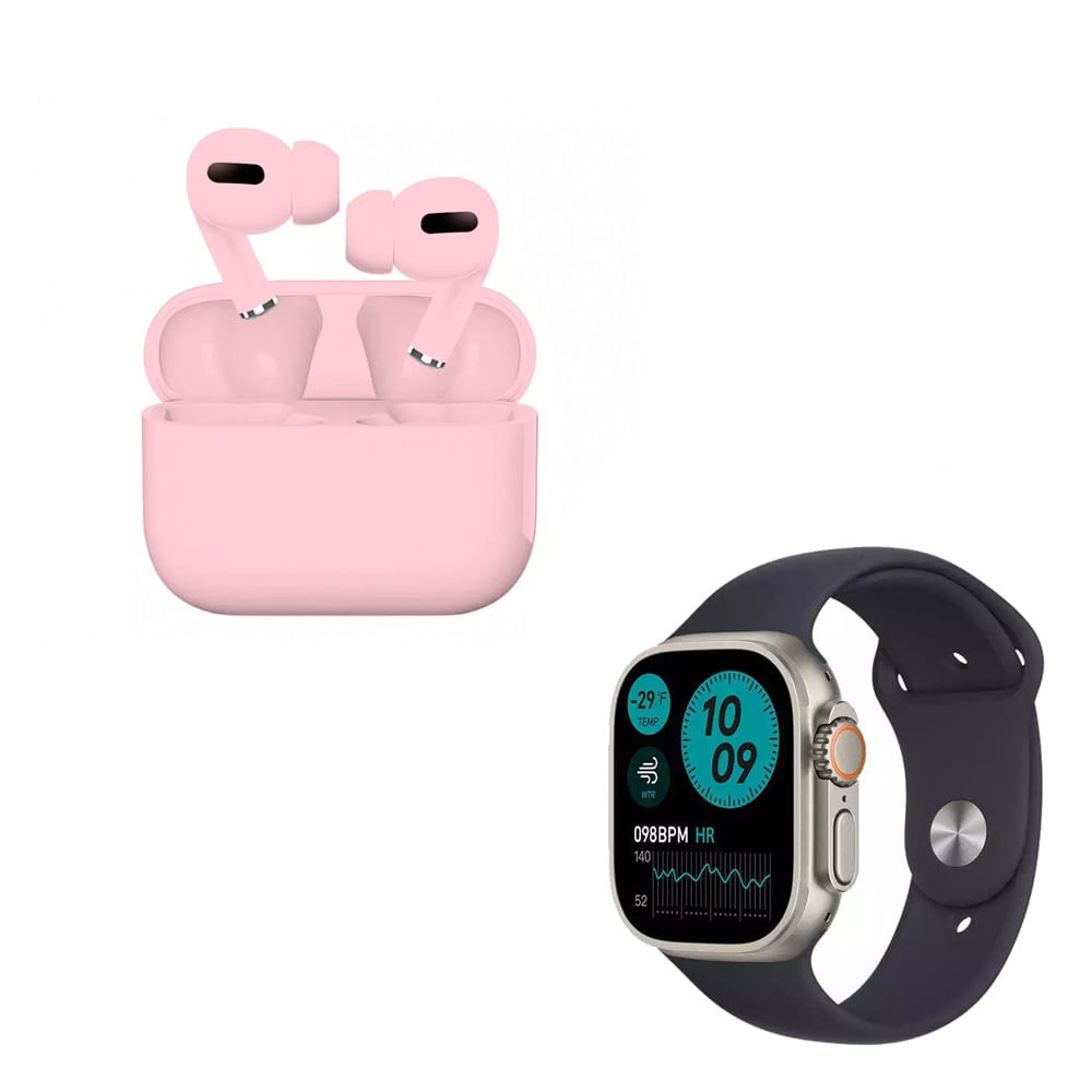 Smartwatch Hands Up GS8 Ultra Negro Serie 8 y Audifono I13 Pro Rosado