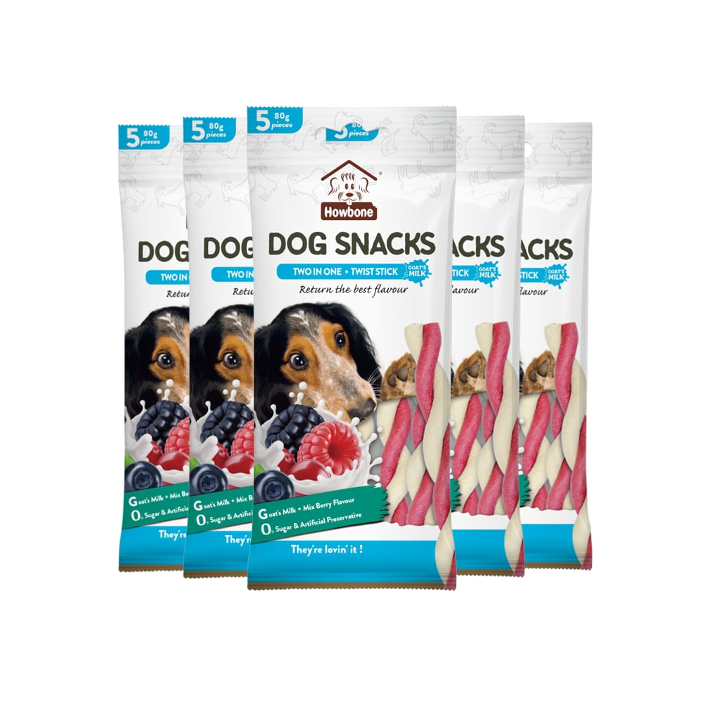 SNACK PARA PERRO HOWBONE LECHE DE CABRA Y FRUTOS ROJOS PACK X6