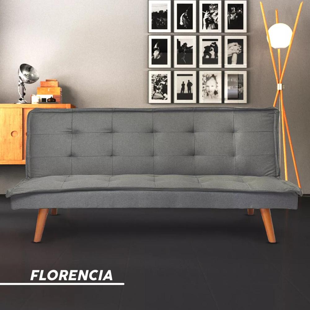 Sofá Futón Florencia Tela Gris 3 Puestos Ofideas