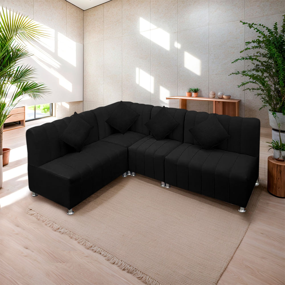 Sofá Seccional en L Treveris 5 Cuerpos Negro Movenda