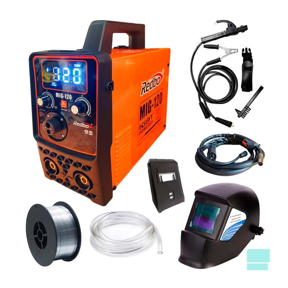 Soldadora Mig-120 Redbo + Careta Fotosensible + Alambre 1Kg - Combo