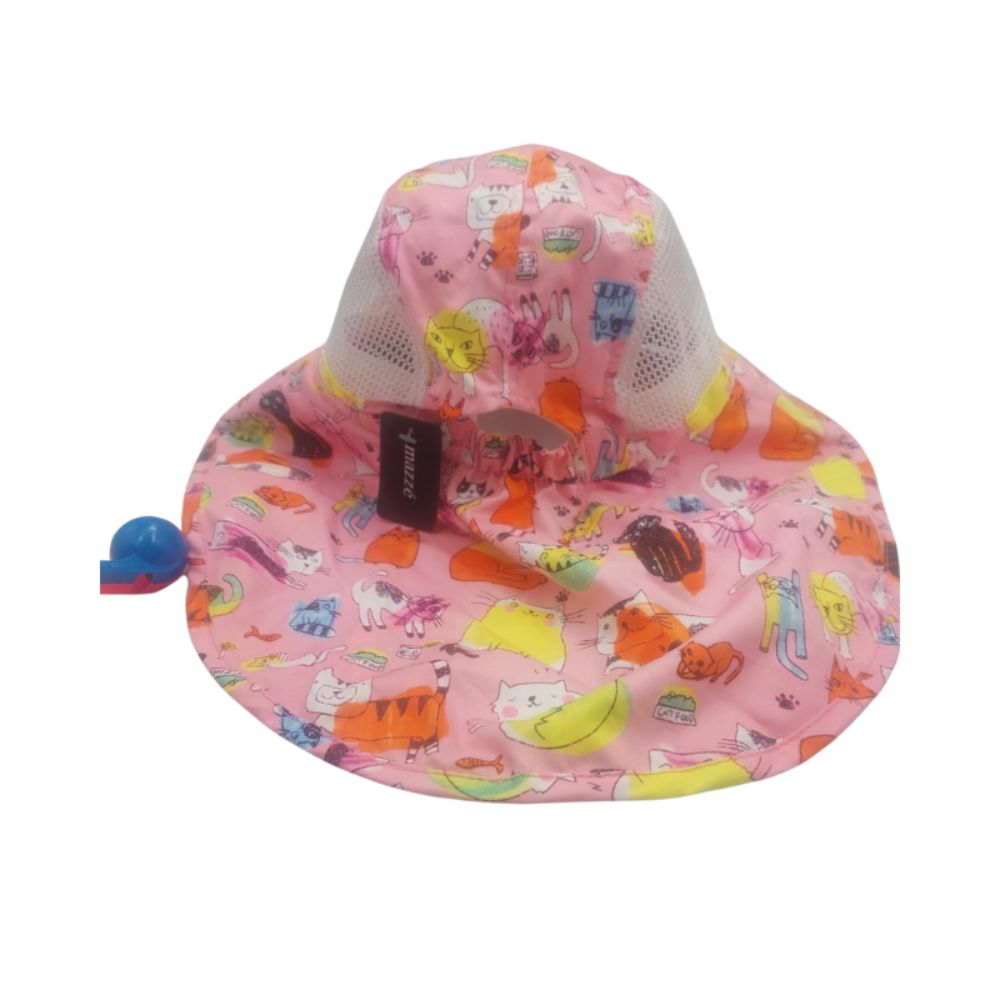 Sombrero con silbato rojo con azul y diseño de gatos sonrientes