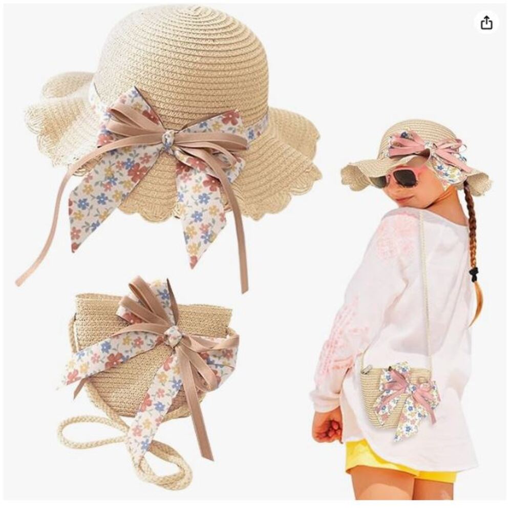 Sombrero De Paja Bolsa con Lazo para Niñas Beige