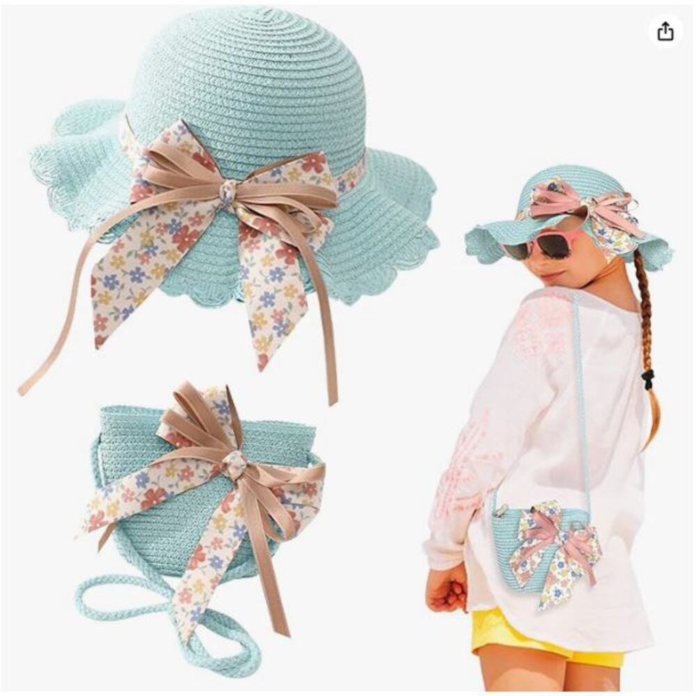 Sombrero De Paja Bolsa con Lazo para Niñas Verde