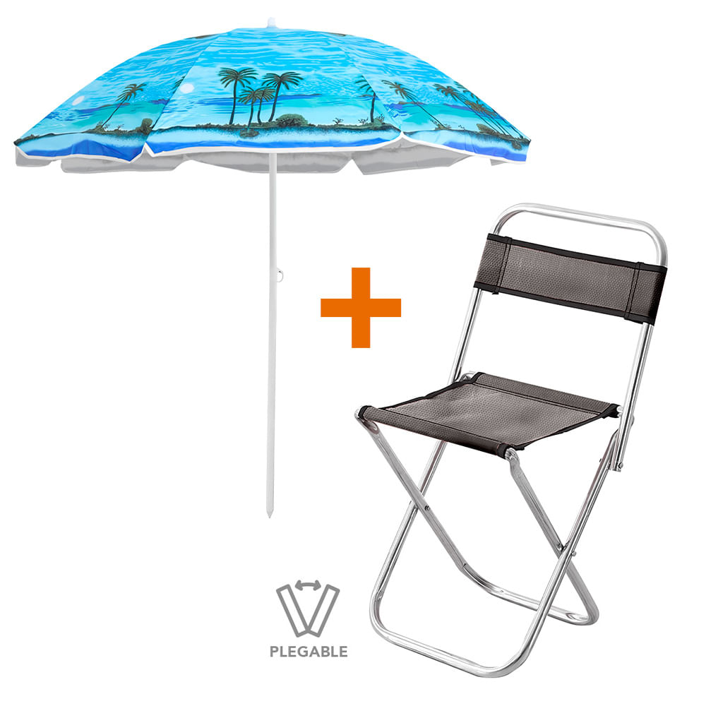 Sombrilla de Playa Grande AZ Y83 Y Silla Plegable 2en1 GR JD3