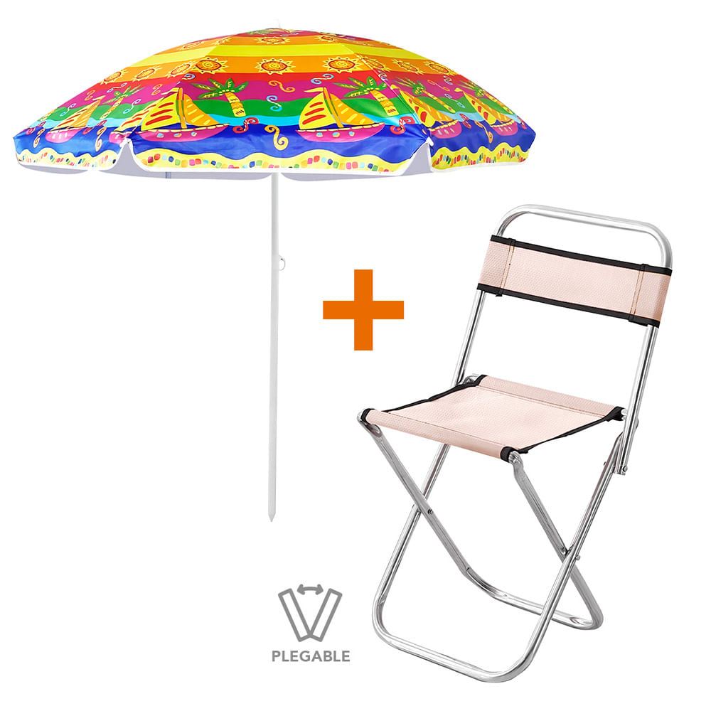 Sombrilla de Playa Grande Barco Y83 Y Silla Plegable 2en1 CR JD3