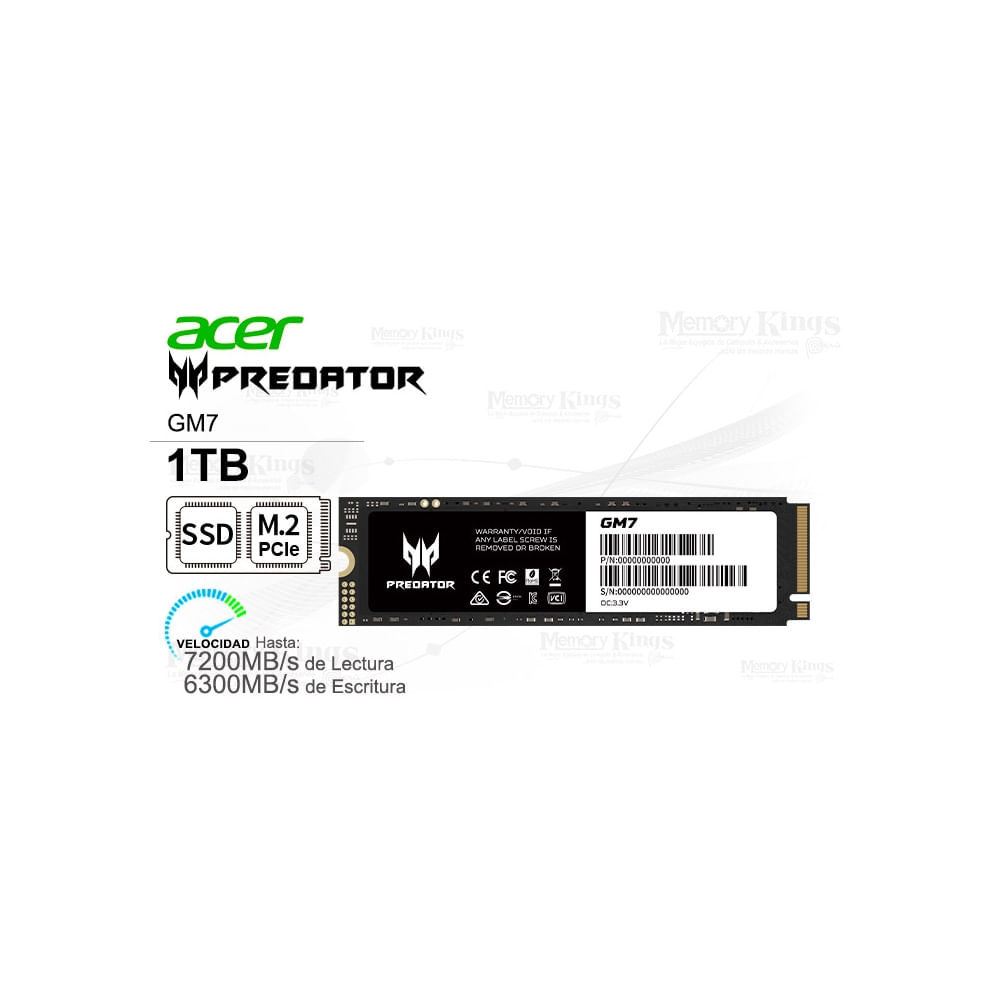 Ssd M.2 Pcie 1Tb Acer Predator Gm7 - Almacenamiento Rápido Y Eficiente Para Gamers