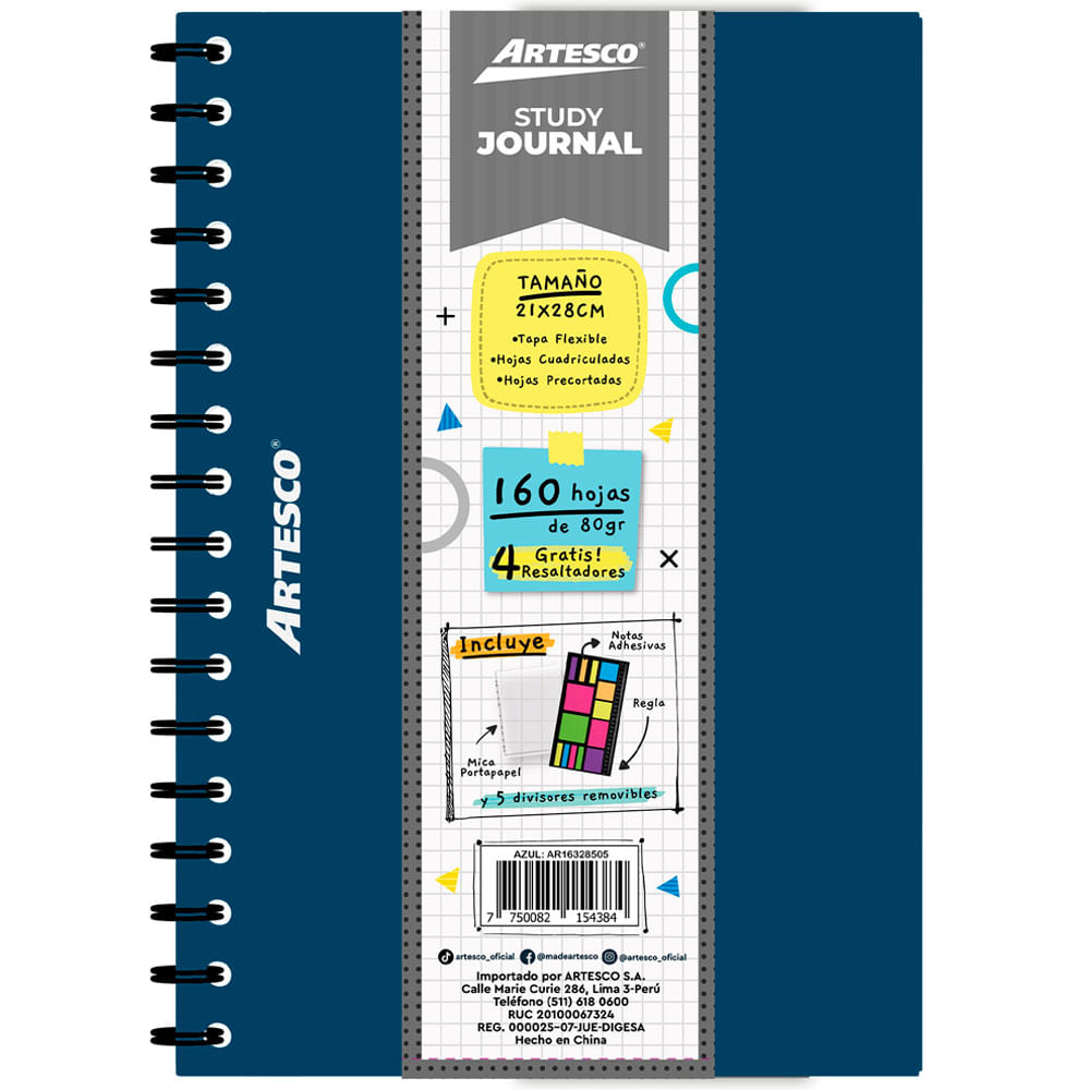 Study Journal Azul - Resalt ARTESCO x4 Unidades