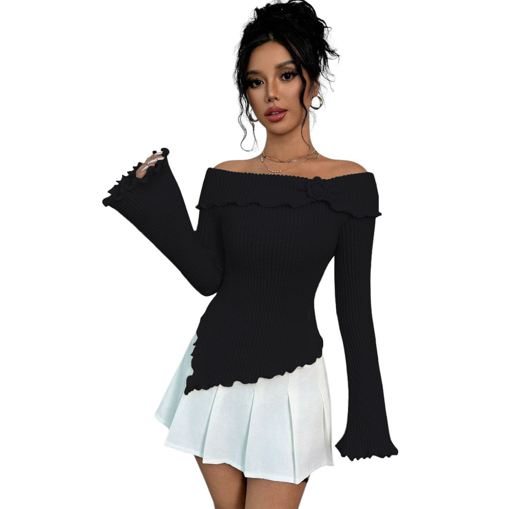 Sueter Mujer Hilo Flor Mlarga 359G-26 Color Negro