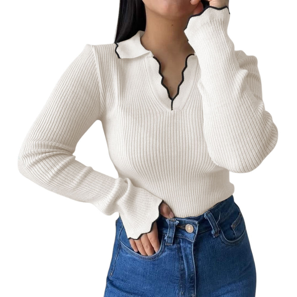 Sueter Mujer Hilo Mlarga Ondulado 359G-21 Color Perla