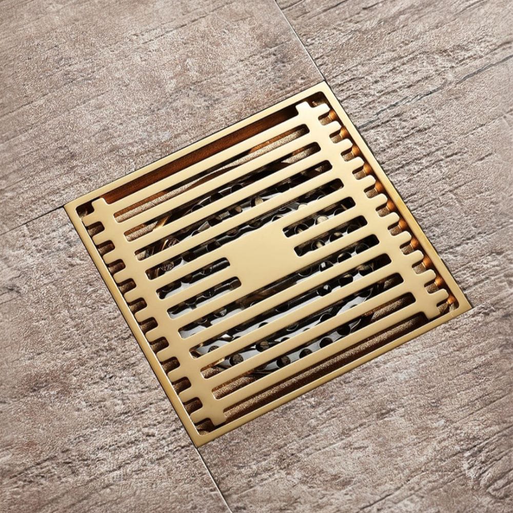 Sumidero Desague Rejilla 10x10cm Anti olores Dorado Oro Brillante Acero SS304