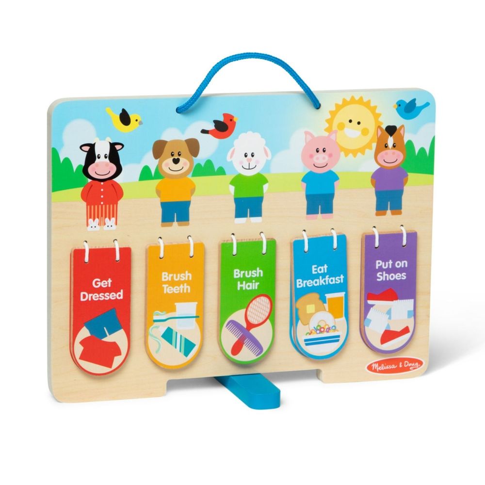 | Incluye | Incluye tabla de rutinas de madera de doble cara con cinco divertidas solapas con bisagras elásticas fáciles de girar en cada lado, calcomanías en blanco para personalizar y calcomanías de idioma para personas que no hablan inglés |