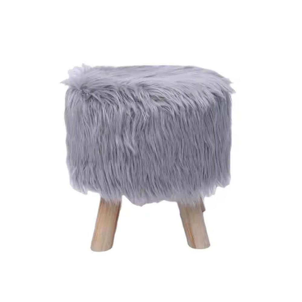 Taburete Banquito Banco De Felpa Madera 30cm Plomo
