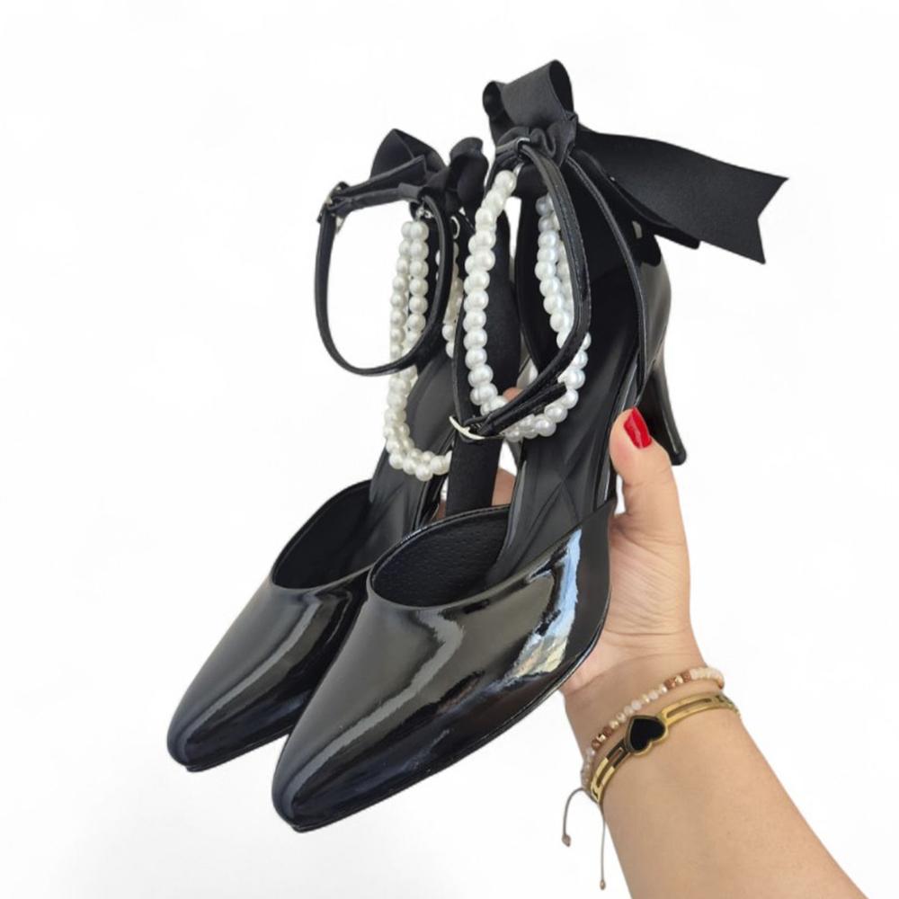 Taco Mujer Charol 7 Lazo 1177 5C-58 Color Negro
