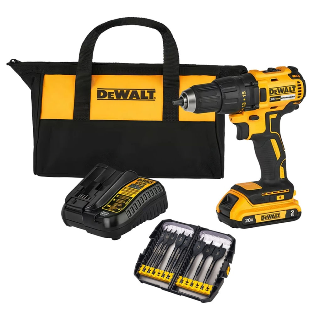 Taladro Atornillador 1/2" 20V Brushless 1 Bat y Carg + Set de Brocas 1/4" Hex 8 Pzs DCD7771D1-K10