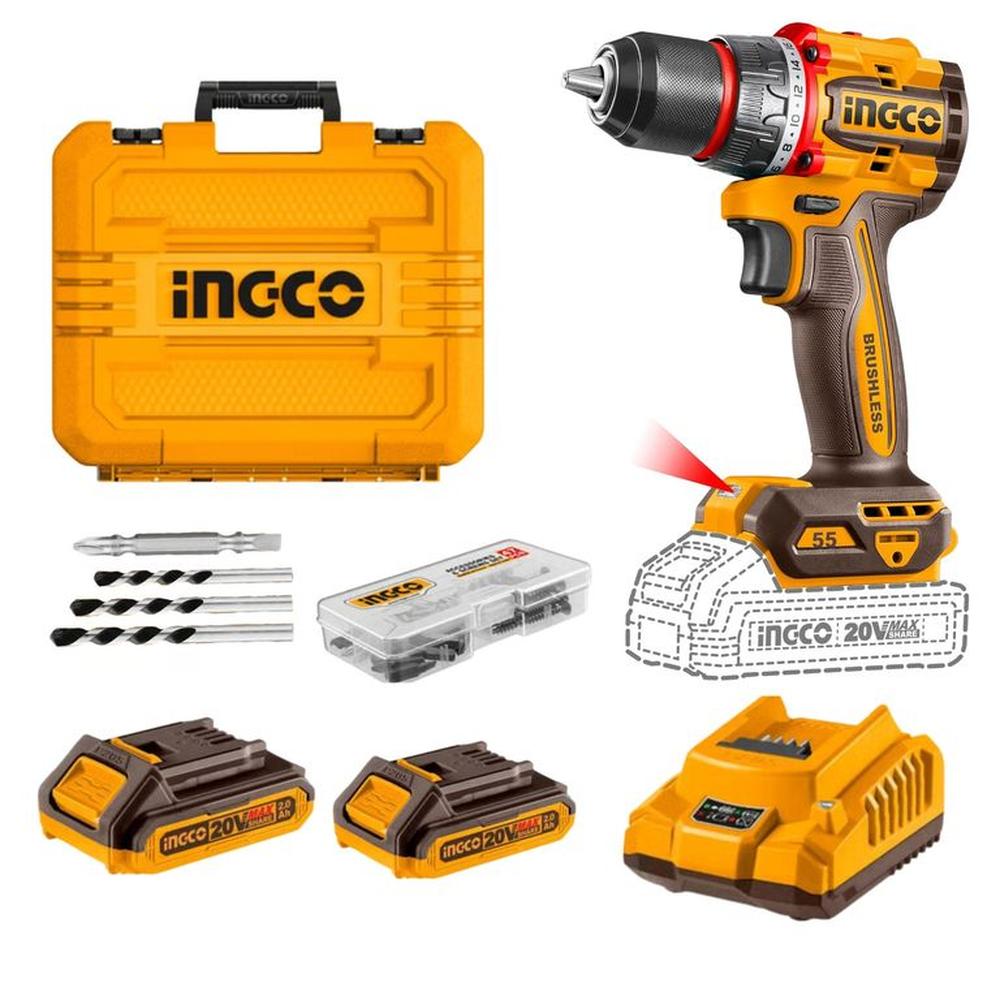 TALADRO PERCUTOR BRUSHLESS 55Nm 20V 2BATERIAS MALETA SET DE BROCAS