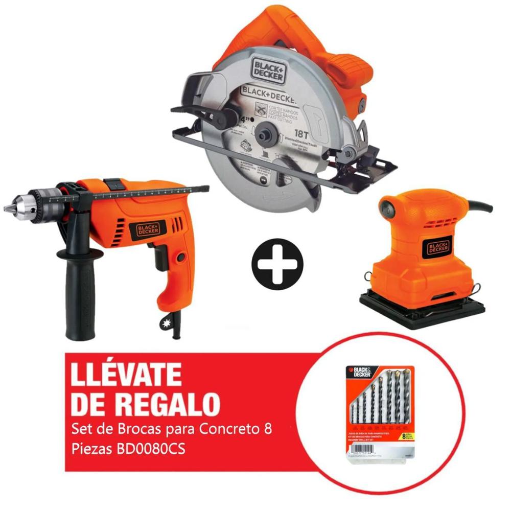 Taladro Percutor + Sierra Circular + Lijadora Orbital B&D