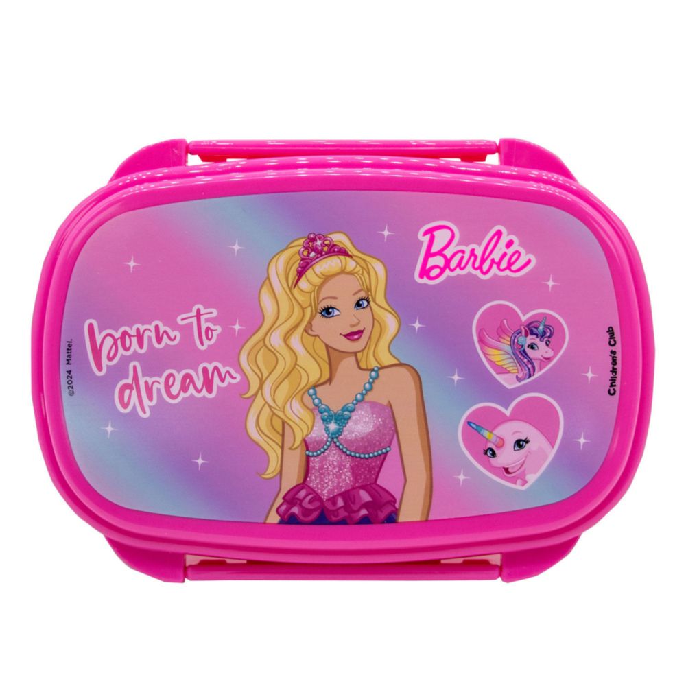 Taper Barbie Pp 600Ml Con Cubiertos Rosa
