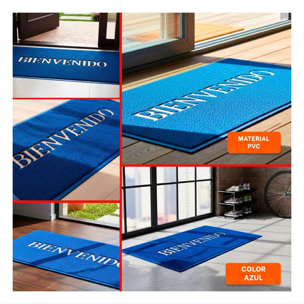 Tapete Rectangular Bienvenido Negro Moderno y Comodo para Recibidores y Salas