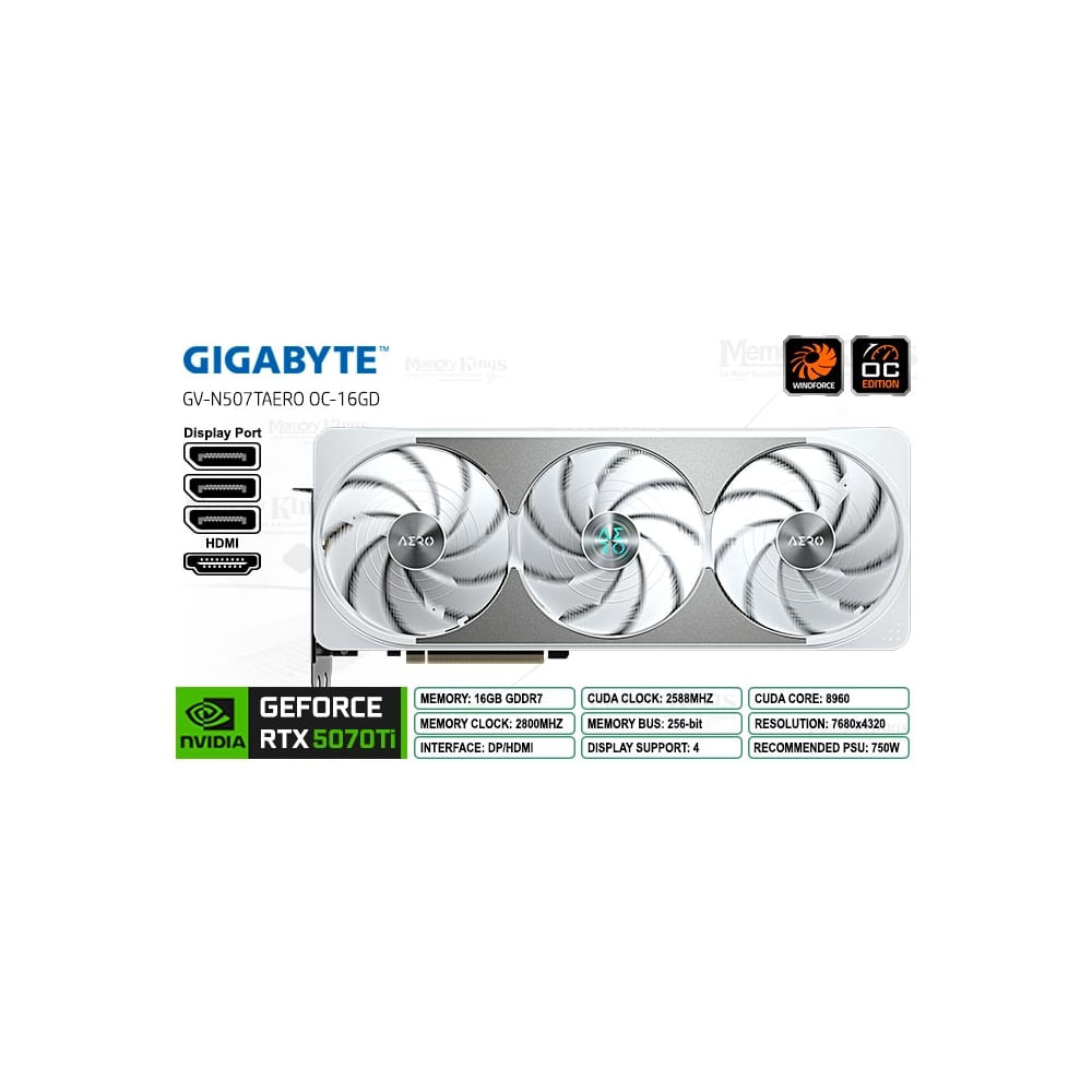 Tarjeta De Video Gigabyte Geforce Rtx 5070 Ti Aero Oc 16Gb Gddr7 Pcie 5.0 - Rendimiento Excepcional - GV-N507TAERO OC-16GD
