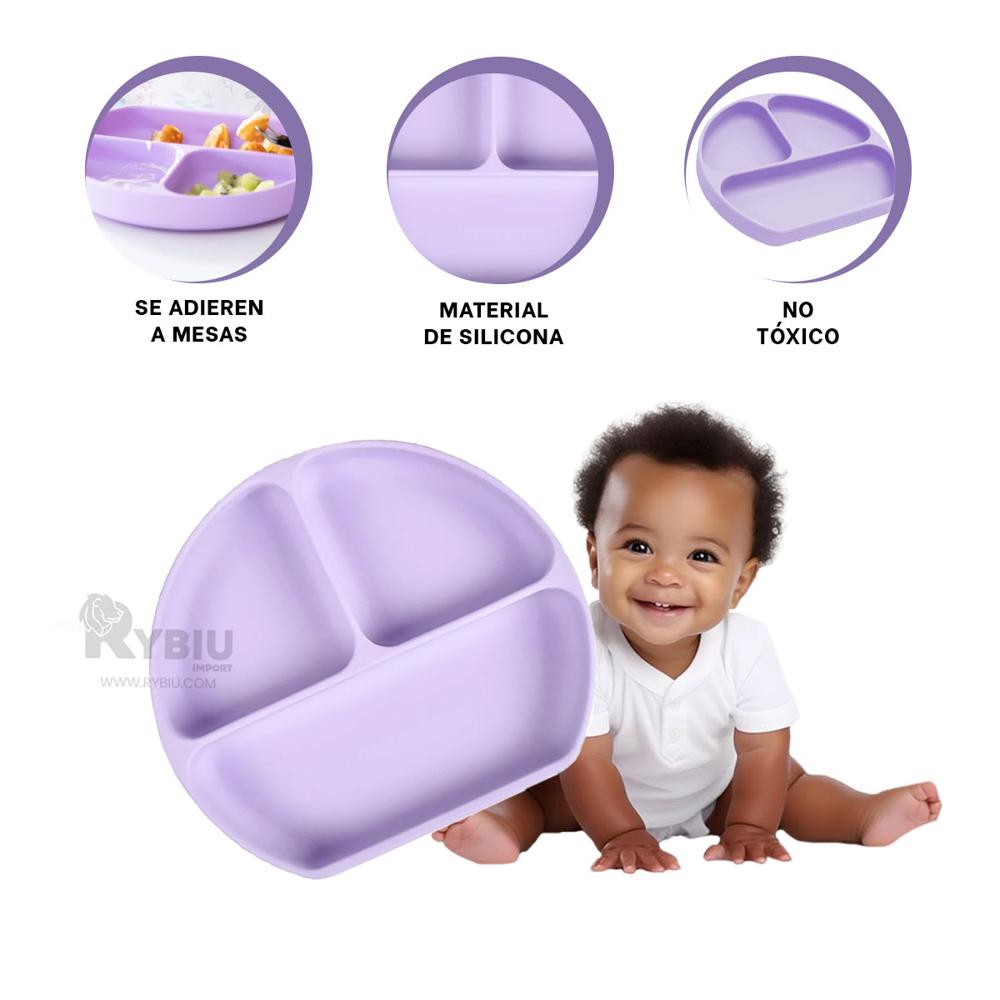 Tazon de Comida de Bebe en Lila Y+Banderitas Adhesivas