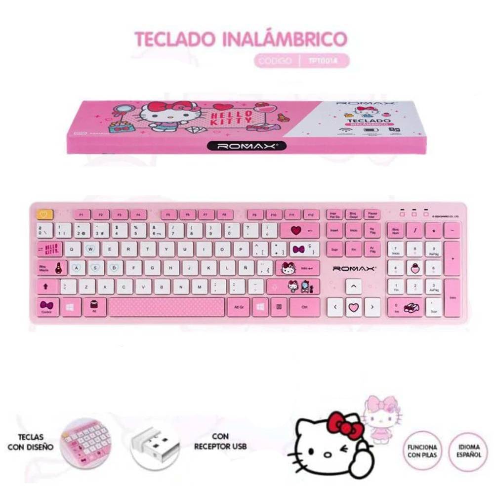 Teclado Inalambrico Rosado Hello Kitty Marca Romax Pc Laptop