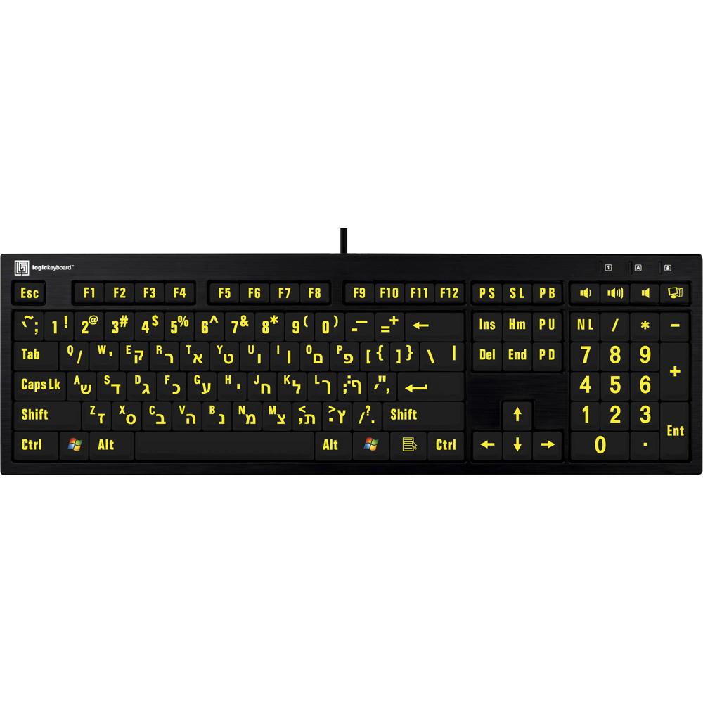 Teclado XL Print NERO PC Slimline con Gran Impresión en Inglés Americano y Hebreo (Amarillo sobre Ne
