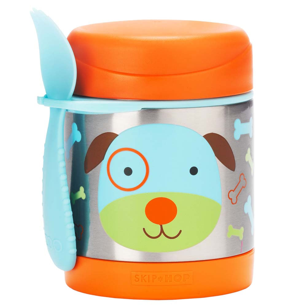 | Características | * Coloridos termos de acero inoxidable mantiene las comidas calientes hasta por 7 horas o frías hasta por 5 horas. * Soporte incorporado para mantener la cuchara-tenedor a la mano * Capacidad 325 ml o 11 oz * BPA Libre, PVC Libre * Edad Recomendada: 12 meses a más. |