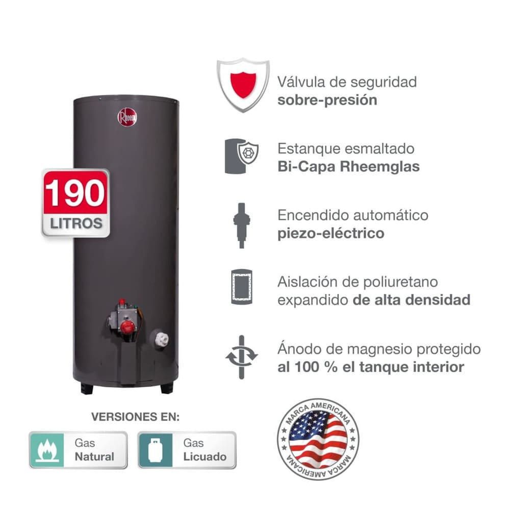 | Características | Estanque esmaltado de Porcelana Bi-Capa Rheemglas™.
