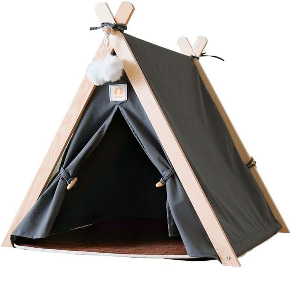 Tienda De Campaña Desmontable De Madera Para Mascotas Negro