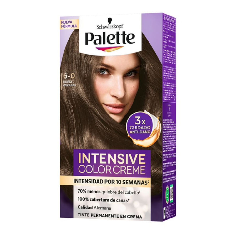 | Descripción del producto | Descripción del productoTinte PALETTE COLOR CREAM 6-0 Rubio Oscuro Caja 170ml Palette Color Creme le trae color a tu vida gracias a sus colores intensos hasta por 10 semanas¹ y 100% cobertura de canas².