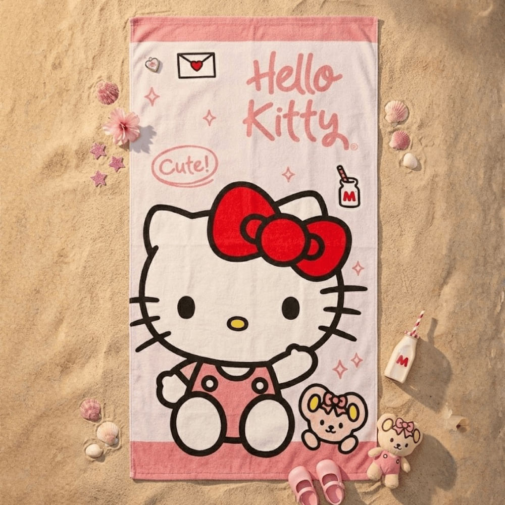Toalla para Playa Gatita Rosa y Peluche 140x70cm