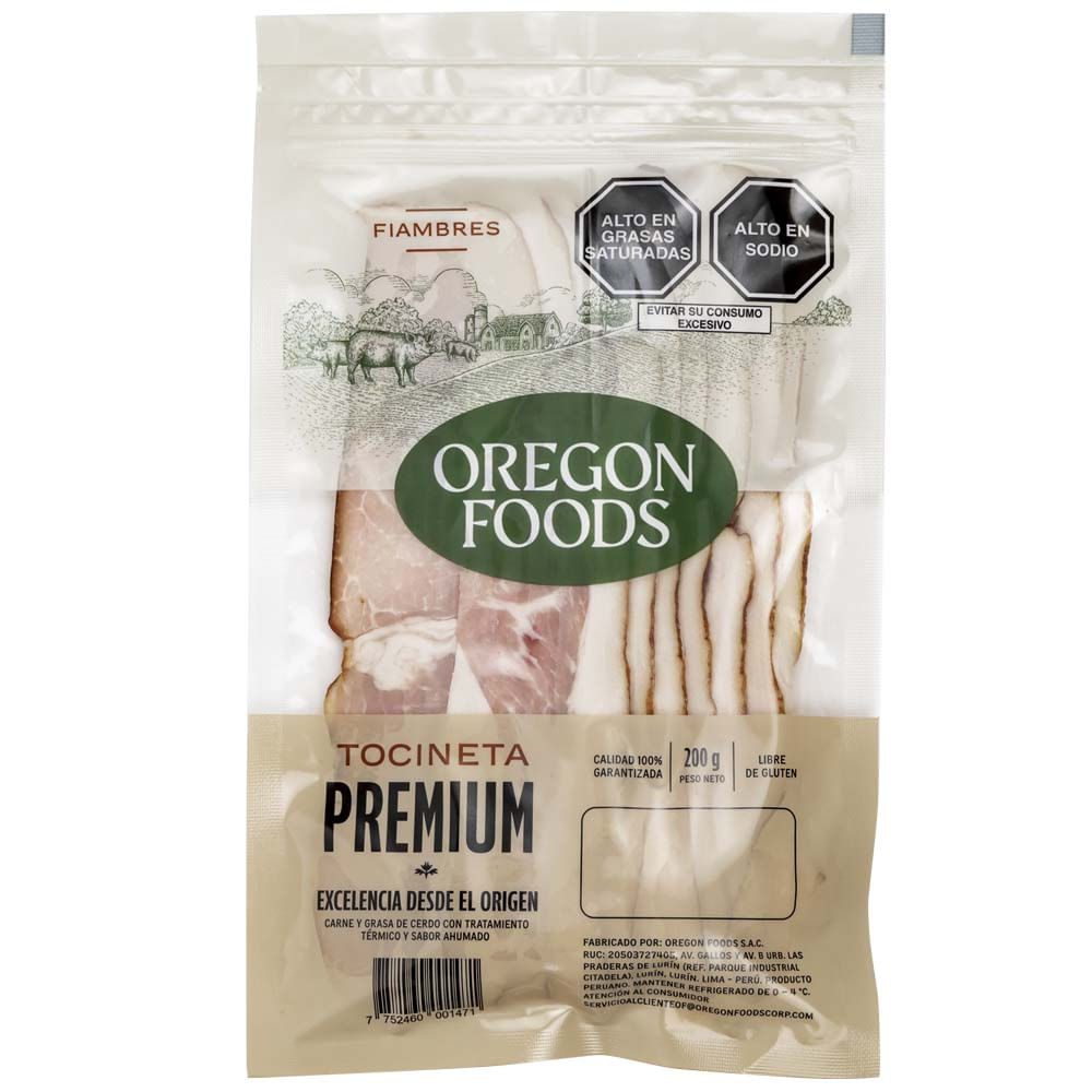 | Composición/Origen | Carne de cerdo, grasa de cerdo, agua, sal, mejorador de carne (caseinato de sodio, sal, maltodextrina, aceite vegetal, estabilizador (SIN 339 (iii) y transglutaminasa), mezcla preservante (antioxidante SIN 325), sustancia conservadora (SIN 262(i)), jarabe de maíz (glucosa (maíz), azúcar, agua, sal, saborizante de vainilla, regulador de la acidez (SIN 330), estabilizador (SIN 451(i), antioxidante (SIN 316), sabor a humo, mezcla para curado (sal, sustancia conservadora (SIN 250), antiaglutinante (SIN 341(iii)), colorante (SIN 127)) |