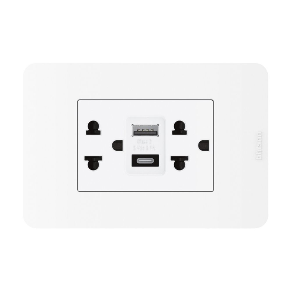 Tomacorriente Doble con USB Bticino Matix Go Blanco