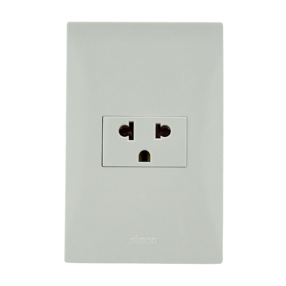 Tomacorriente Universal Simon S220 Blanco de Policarbonato con Contactos de Latón y Plata