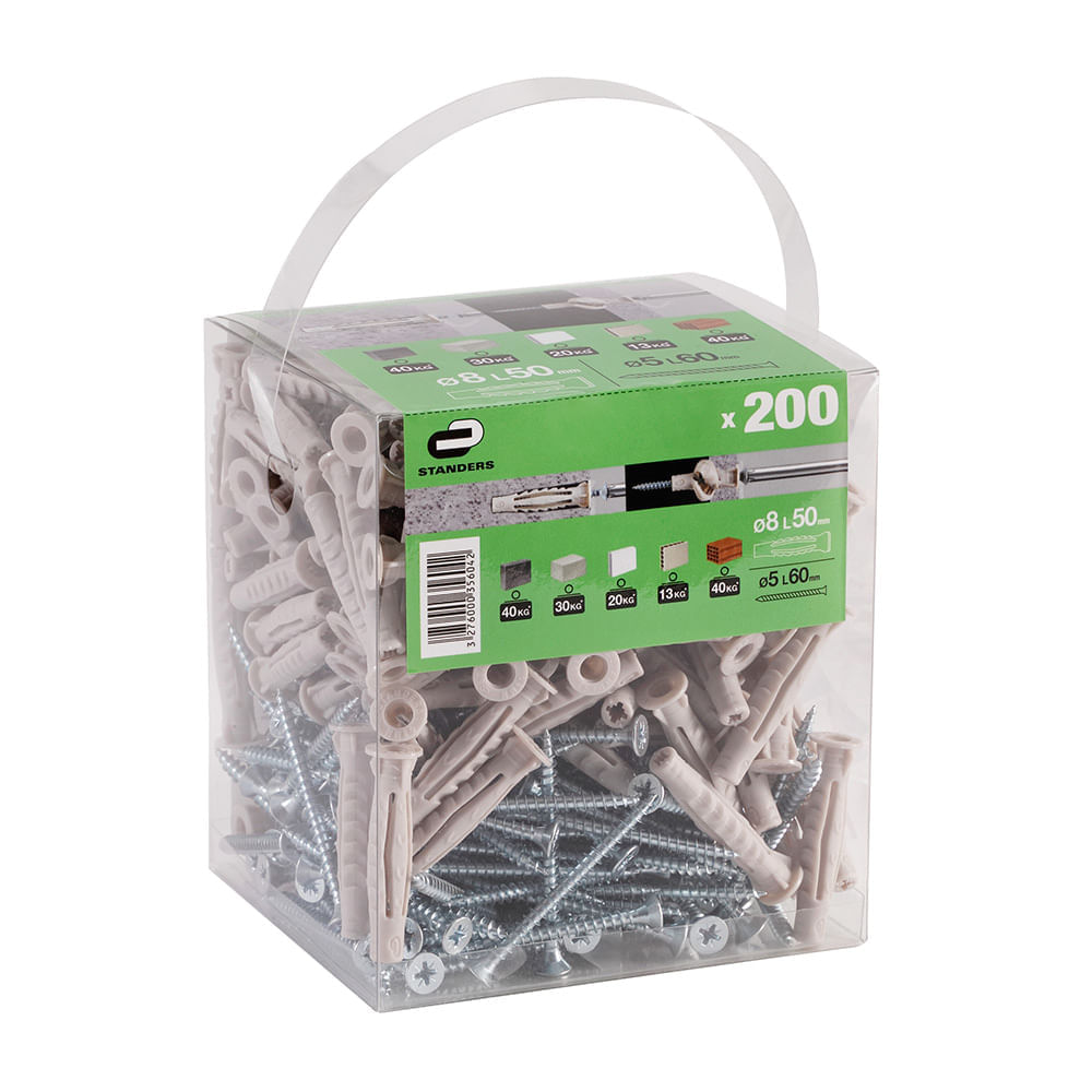 Tornillo + Tarugo 8x50mm x 200 unidades Standers