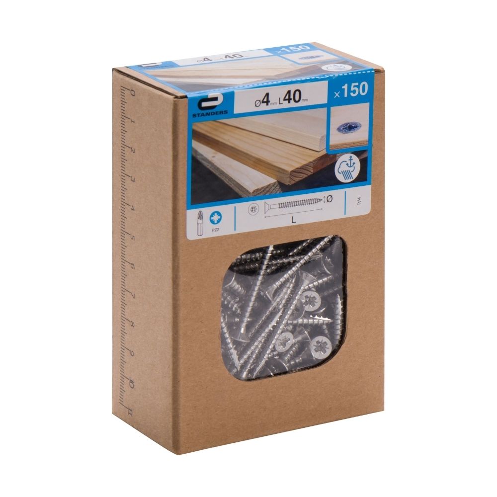 Tornillo Pz Inoxidable 4x40mm para madera 150 unidades Standers